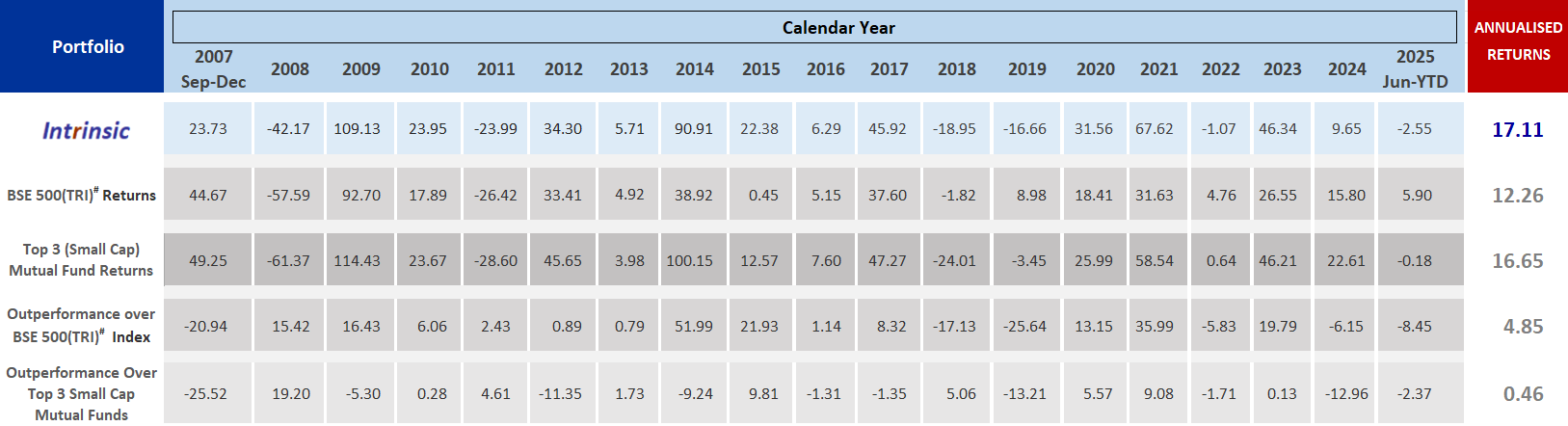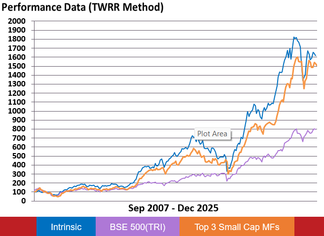 PERFORMANCE DATA VIS-A-VIS BSE 500(TRI) INDEX & TOP SMALL CAP MUTUAL FUNDS (in%) - TWRR* Method