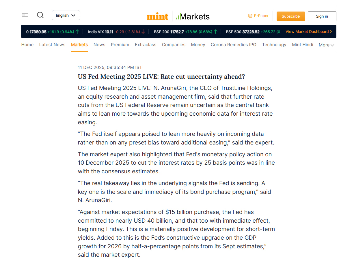 The Great Divide: When the mood overtakes the math The Economic Times | 31st, Dec 2025 |